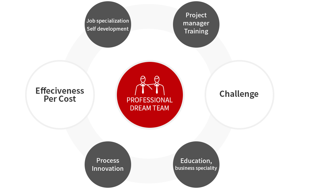A professional organizational structure that provides improved systematic education that ensures high efficiency while maintaining a stable price and quality.