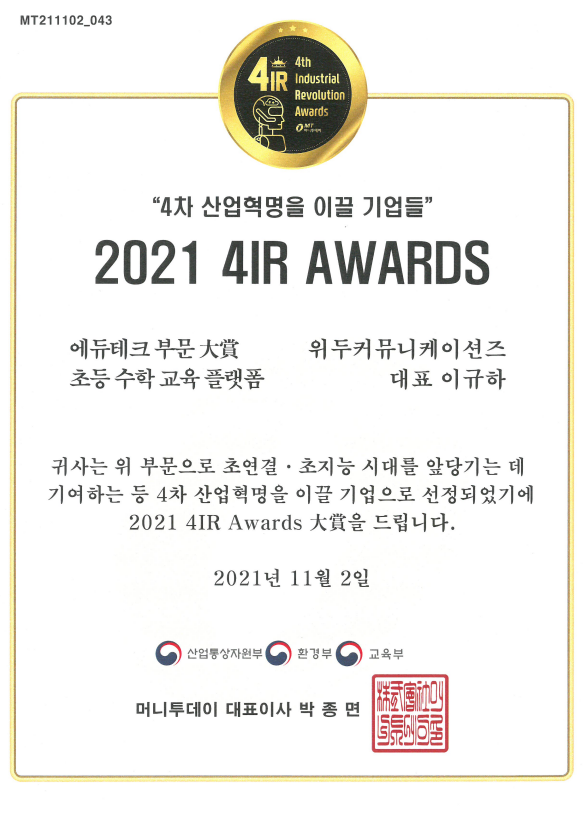 2021 4IR AWARDS 대상 페이지 정보 작성자 WeDu 댓글 0건 조회 8,468회 작성일 21-12-31 13:01 본문 2021-11-02 2021 4IR AWARDS 대상 머니투데이 List Previous2021 소년한국 우수 어린이 도서 22.01.06 Next2020 소년한국 우수 어린이 도서 선정 21.12.31
